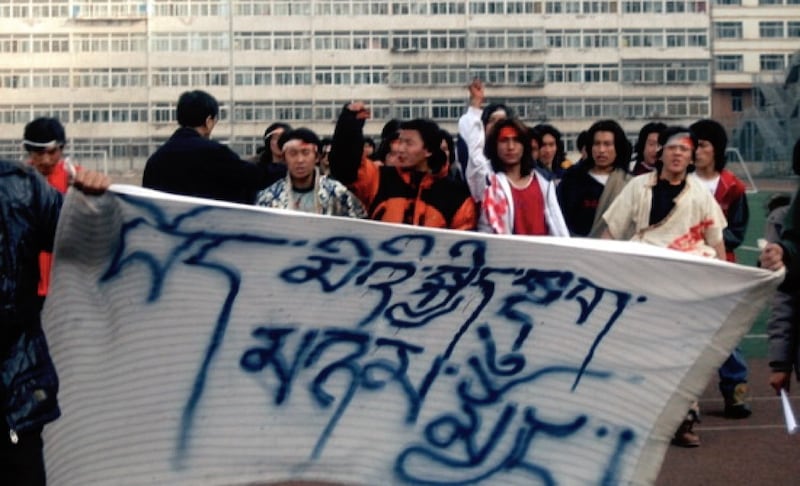 位于甘肃省省会兰州市的西北民族大学,在2008年3月遍及全藏的抗议中非常醒目。我在《鼠年雪狮吼——2008年西藏事件大事记》【2】一书中的相关记录写: